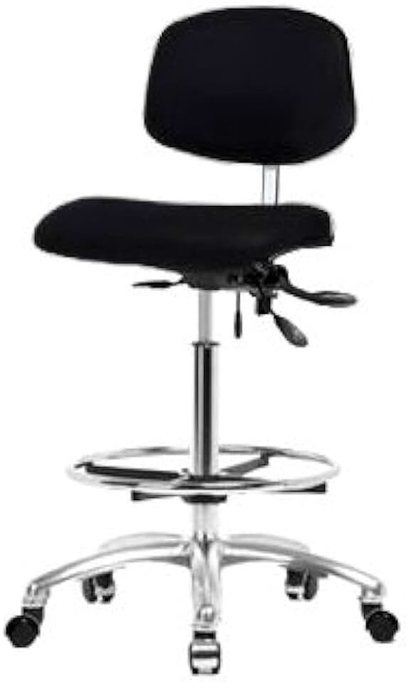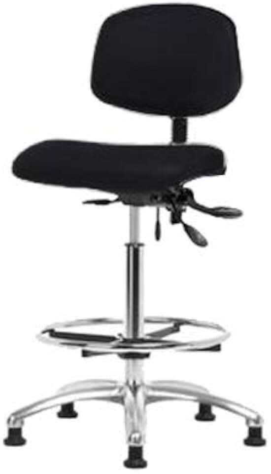 Thomas ECOM NECR-HBCH-CR-T1-A0-CF-EG-ESDBU ESD/Clean Room Vinyl High Bench Height Chair with Chrome Base and Tilt, ESD Glides, Chrome Foot Ring Without Arms, Blue