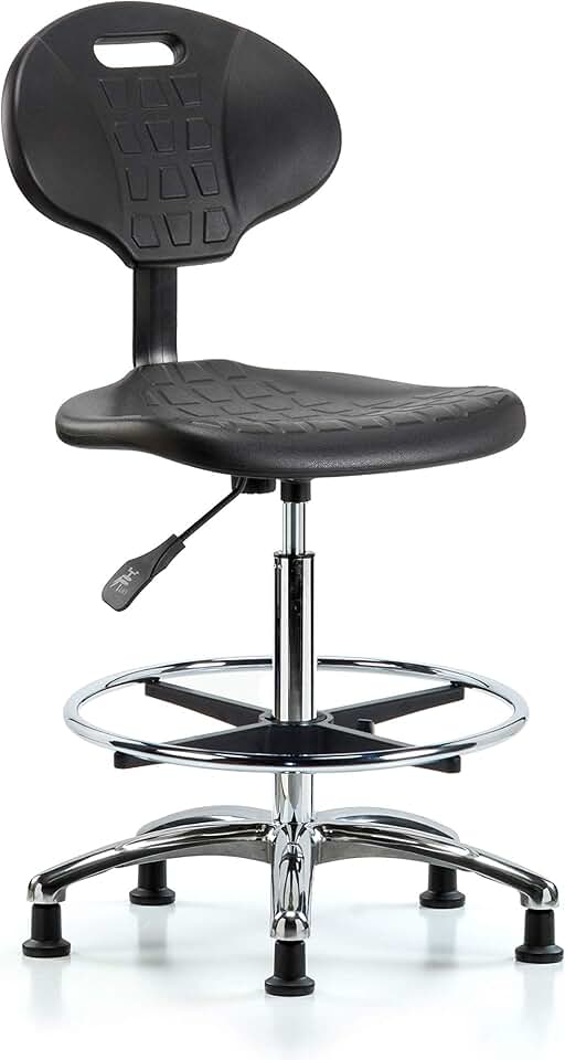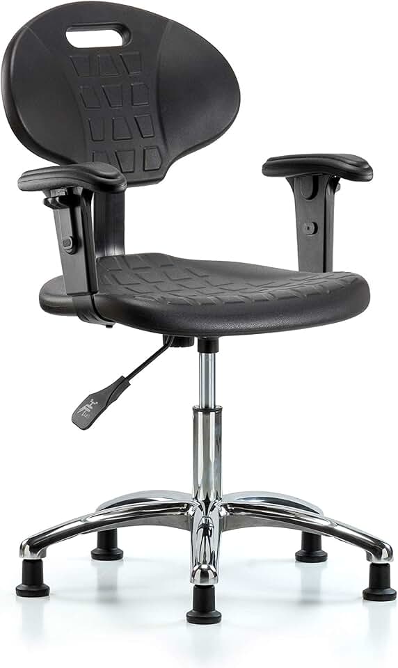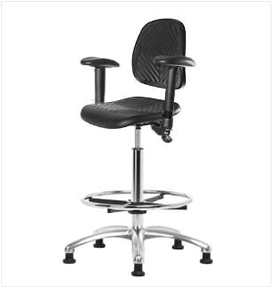 Thomas ECOM PHBCH-MB-CR-T1-A1-CF-RG Polyurethane High Bench Height Chair with Chrome Base with Tilt, Medium Back, Adjustable Arm, Glides