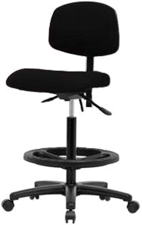 Thomas ECOM FHBCH-RG-T1-A0-BF-RG-F42 Fabric High Bench Height Chair with Black Nylon Base, Black Foot Ring, with Tilt Without Arms, Glides, Black