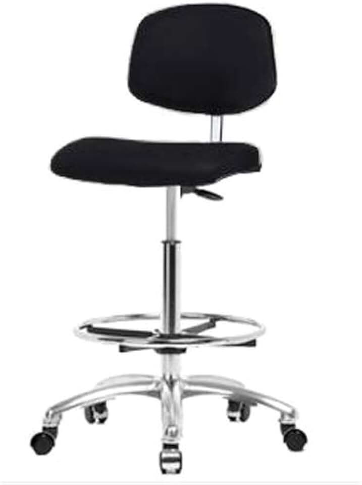 CLR-VMBCH-CR-CF-CC-c8540 Basic Clean Room Vinyl Medium Bench Height Chair with Chrome Base, Chrome Foot Ring, Chrome Casters, Black