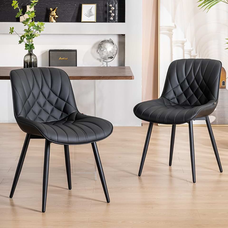 YOUNUOKE Black Dining Chairs Set of 2 Modern Upholstered Kitchen Chair Comfortable PU Leather Dinner Chairs for Kitchen Dinning Room