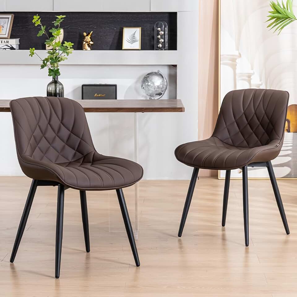 YOUNUOKE Dining Chairs Set of 2 Mid Century Modern Kitchen Chair Comfortable Upholstered Faux Leather Dinner Chairs for Kitchen Dining Room, Brown