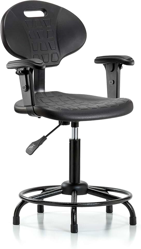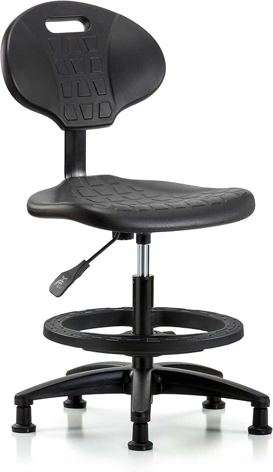 Thomas ECOM CLR-PHBCH-CR-T0-A0-CF-RG Clean Room Polyurethane High Bench Height Chair with Chrome Base, Chrome Foot Ring, Glides Without Arms and Tilt
