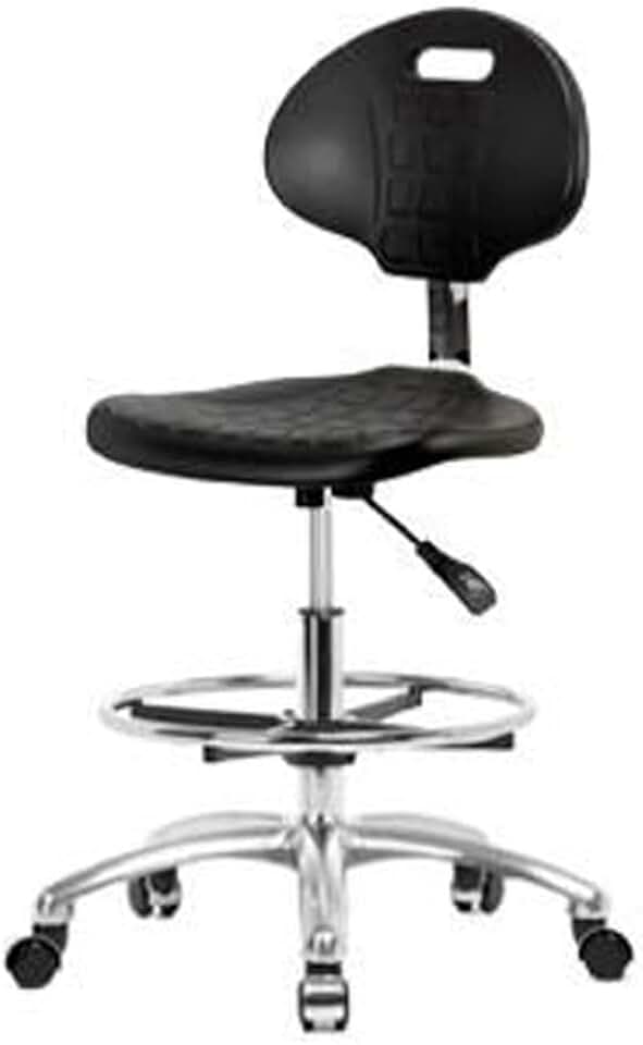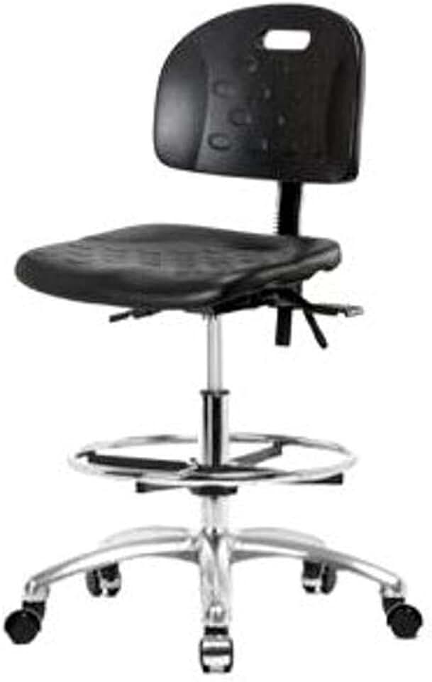 Thomas ECOM CLR-PHBCH-CR-T0-A0-CF-CC Clean Room Polyurethane High Bench Height Chair with Chrome Base, Chrome Foot Ring, Chrome Casters Without Arms and Tilt