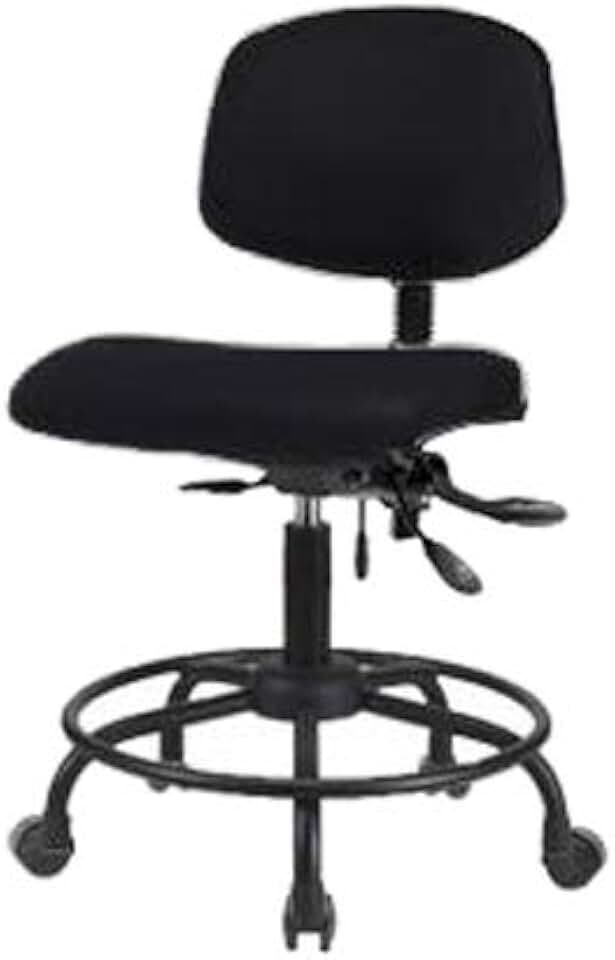 Thomas ECOM VHBCH-CR-T1-A1-CF-RG-c8540 Black Vinyl High Bench Height Chair with Chrome Base and Tilt, Adjustable Arm, Chrome Foot Ring, Glides