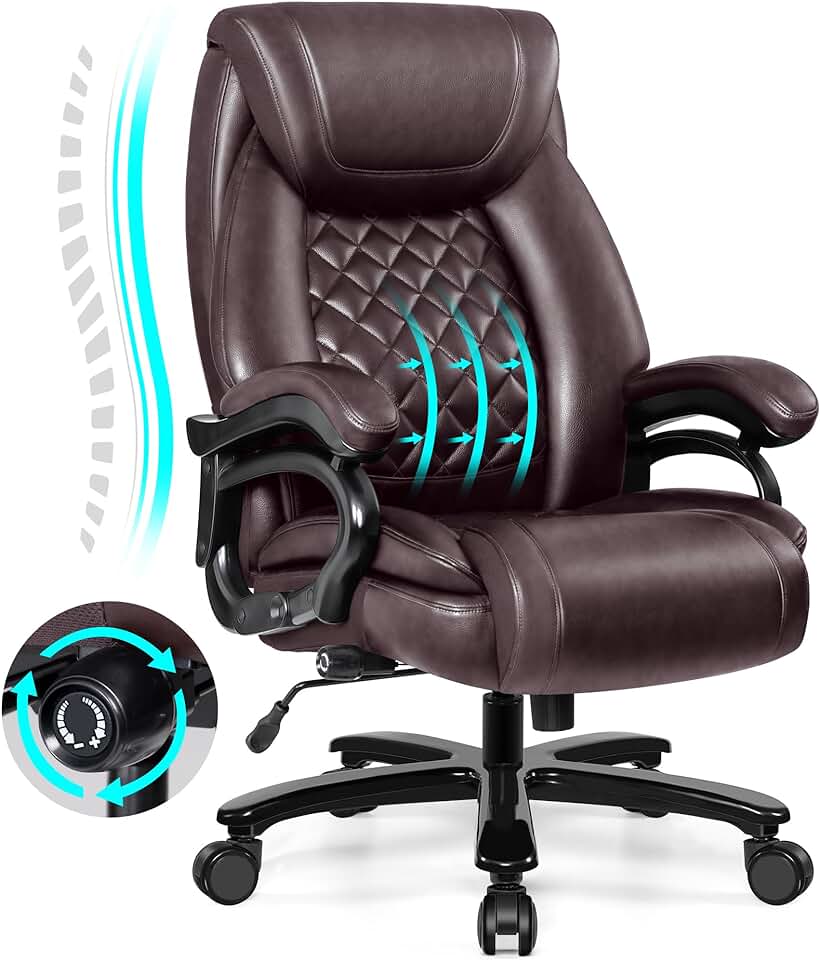 Big and Tall 500lbs Office Chair,Heavy Duty Large PU Leather Executive Desk Chair with Wide Seat, Adjustbale Ergonomic Lumbar Support High Back Rocking Computer Chair for Heavy People (Brown)