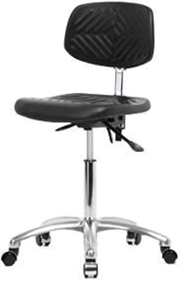 Thomas ECOM CLR-PMBCH-CR-T1-A0-NF-CC Clean Room Polyurethane Medium Bench Height Chair with Chrome Base, with Tilt, Chrome Casters Without Arms and Foot Ring