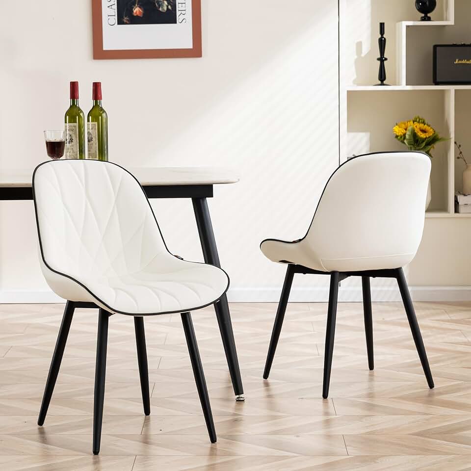 YOUNIKE Dining Chairs Set of 2, White Comfy Padded Kitchen Chairs, Armless Modern Faux Leather Upholstered Dining Room Chairs, Elegant Dinning Chairs Side Chairs, Easy to Clean