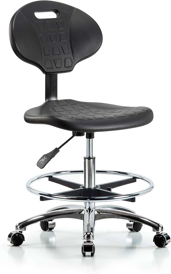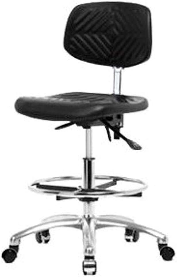 Thomas ECOM HPMBCH-CR-T0-A0-CF-CC Industrial Polyurethane Medium Bench Height Chair with Chrome Base Without Tilt Without Arms, Chrome Foot Ring, Chrome Casters