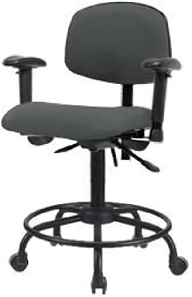Thomas ECOM FDHCH-RT-T1-A1-RC-F42 Fabric Desk Height Chair with Round Tube Base, with Tilt, Adjustable Arms, Regular Casters, Black