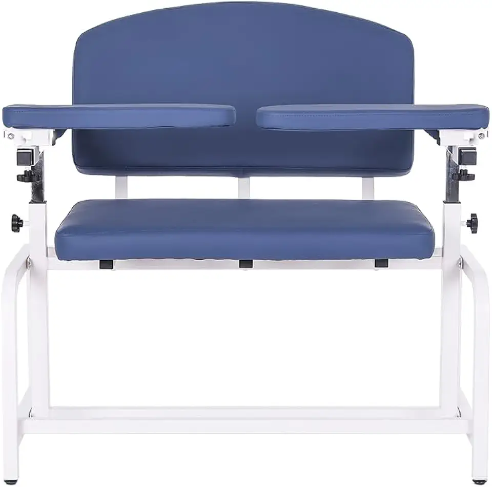 Luxe Upholstered Blood Drawing Chair – Padded Phlebotomy Seat w/Adjustable Armrest & Steel Framing – Ideal for Hospitals & Medical Facilities (Blue)