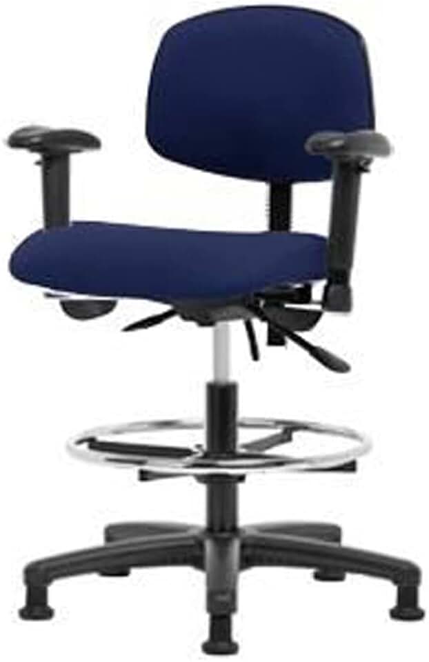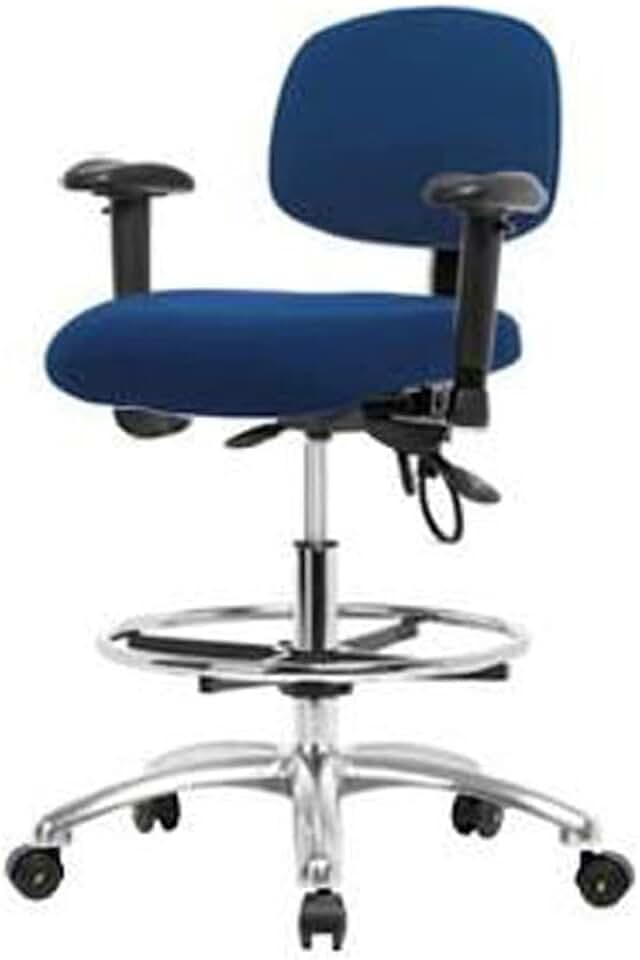 Thomas ECOM ESD-VMBCH-CR-T1-A1-CF-EC-ESDBLU ESD Vinyl Medium Bench Height Chair with Chrome Base, Chrome Foot Ring, with Tilt, Adjustable Arms, ESD Casters, Blue