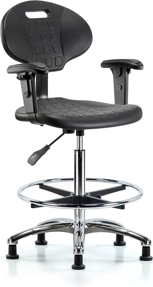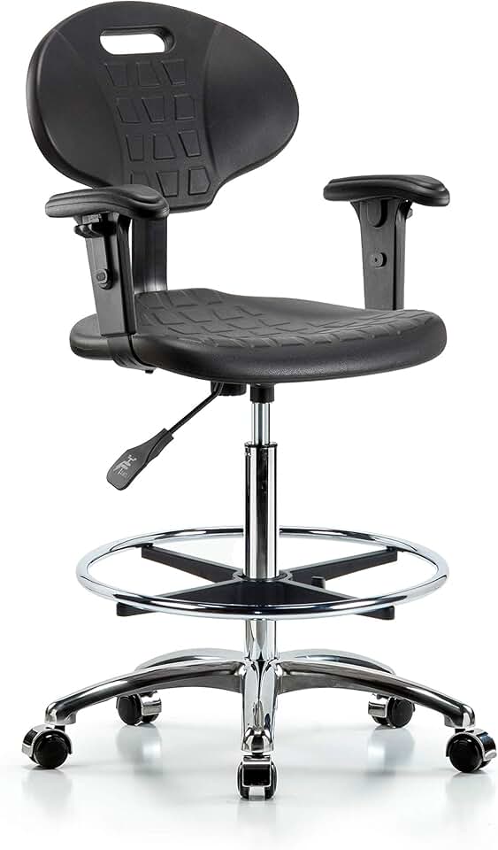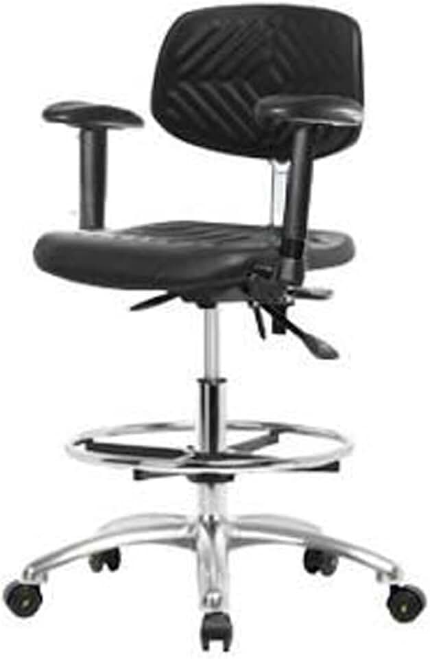 Thomas ECOM ESD-PMBCH-CR-T0-A1-CF-EC ESD/Clean Room Polyurethane Medium Bench Height Chair with Chrome Base, Chrome Foot Ring, Adjustable Arms, ESD Casters Without Tilt