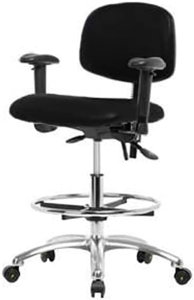 ESD-FHBCH-CR-T1-A1-CF-EC-ESDBLK ESD Fabric High Bench Height Chair with Chrome Base, Chrome Foot Ring, with Tilt, Adjustable Arms, ESD Casters, Black