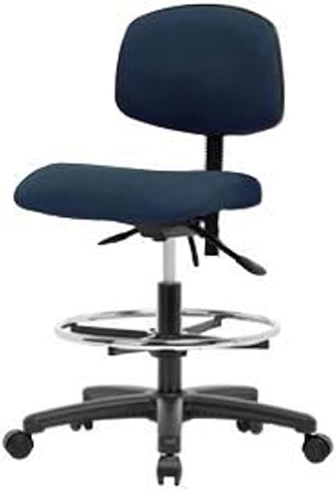 Thomas ECOM FMBCH-RG-T1-A0-CF-RC-F43 Fabric Medium Bench Height Chair with Black Nylon Base, Chrome Foot Ring, with Tilt Without Arms, Regular Casters, Blue
