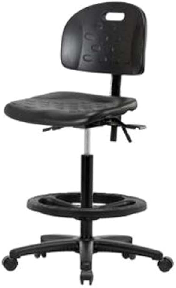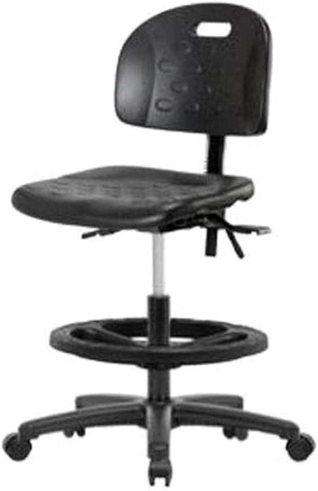 HPHBCH-RG-T1-A0-CF-RC Industrial Polyurethane High Bench Height Chair with Black Nylon Base and Tilt Without Arms, Chrome Foot Ring, Casters