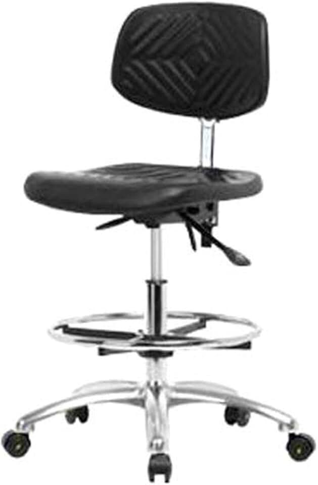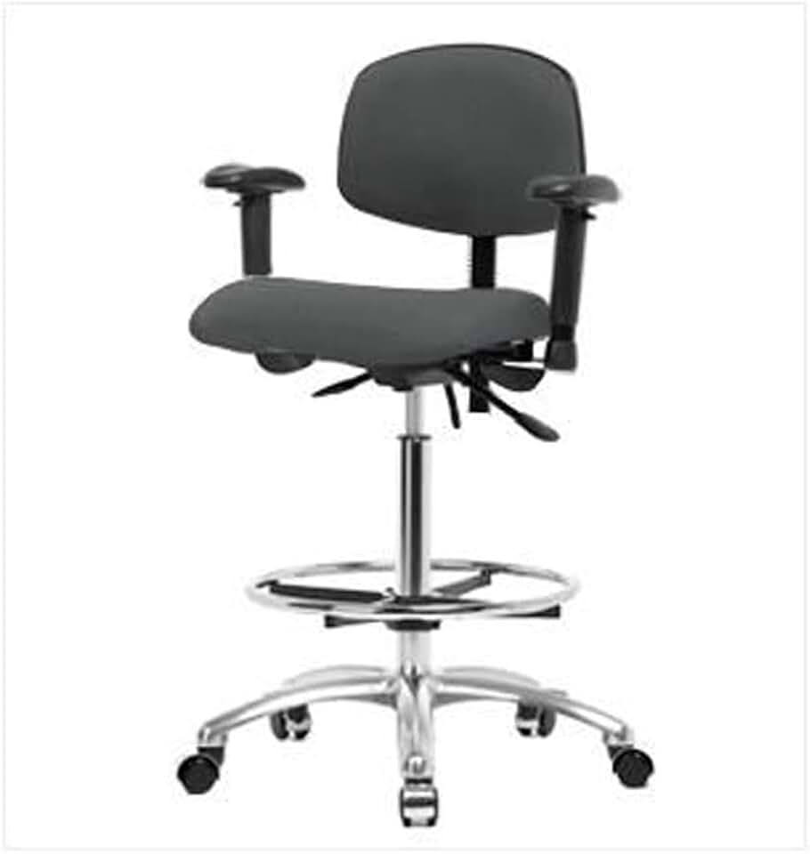 CLR-PHBCH-CR-T0-A1-CF-CC Clean Room Polyurethane High Bench Height Chair with Chrome Base, Adjustable Arms, Chrome Foot Ring, Chrome Casters Without Tilt
