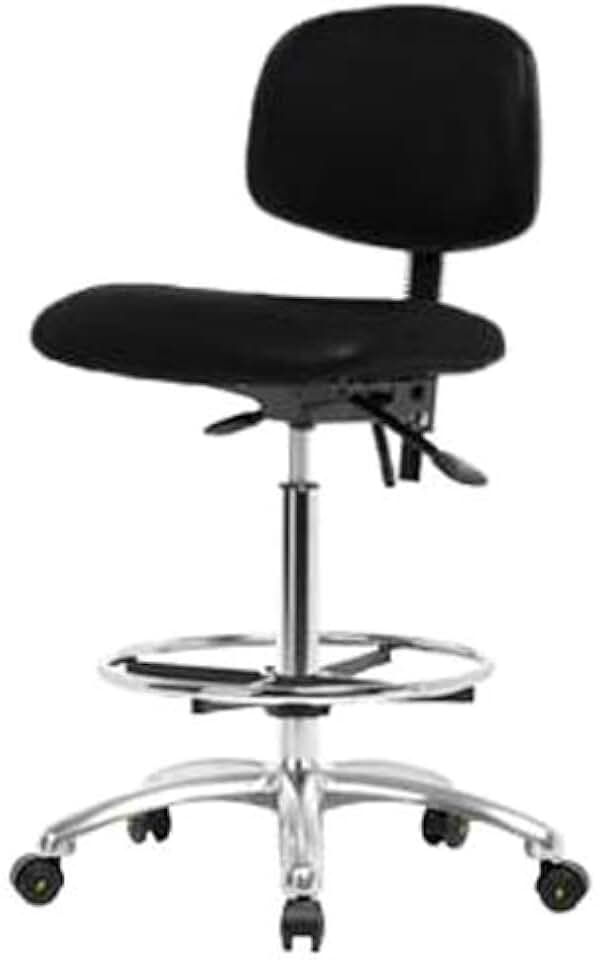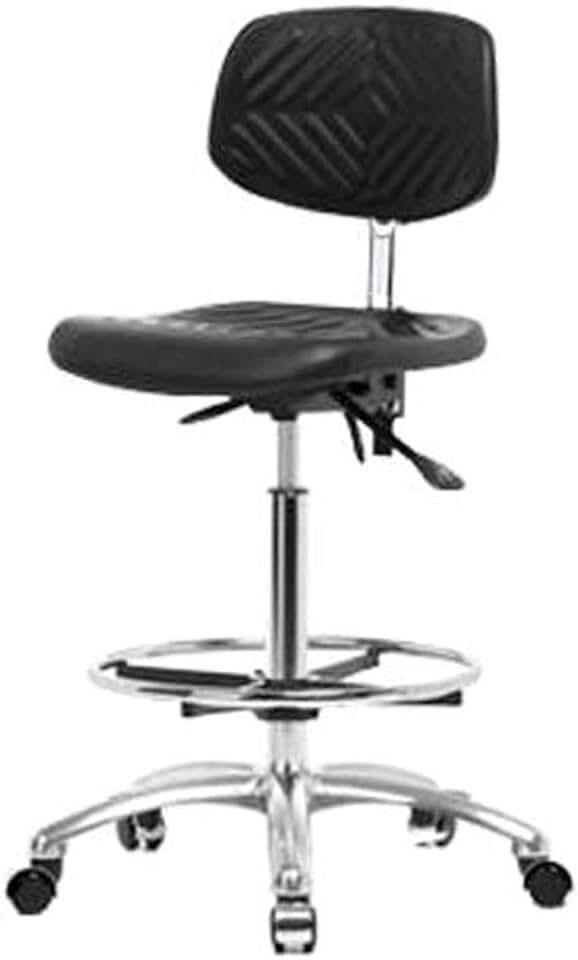 Thomas ECOM NECR-MBCH-CR-T1-A0-NF-EC-ESDBK ESD/Clean Room Vinyl Medium Bench Height Chair with Chrome Base and Tilt, ESD Casters Without Arms Without Foot Ring, Black