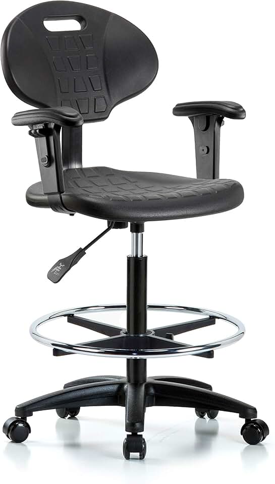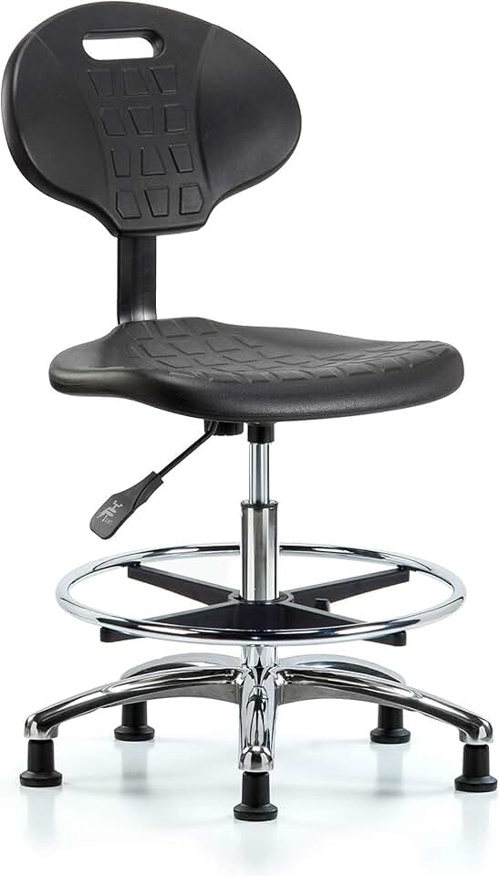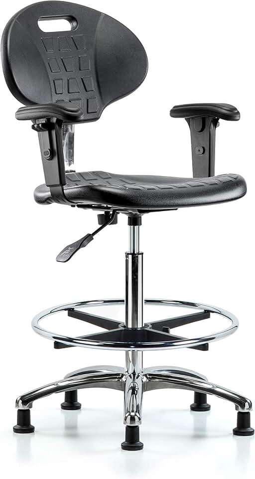 CLR-PHBCH-CR-T0-A1-CF-RG Clean Room Polyurethane High Bench Height Chair with Chrome Base, Adjustable Arms, Chrome Foot Ring, Glides Without Tilt