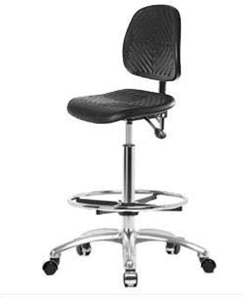 Thomas ECOM PHBCH-MB-CR-T1-A1-CF-CC Polyurethane High Bench Height Chair with Chrome Base with Tilt, Medium Back, Adjustable Arm, Chrome Casters