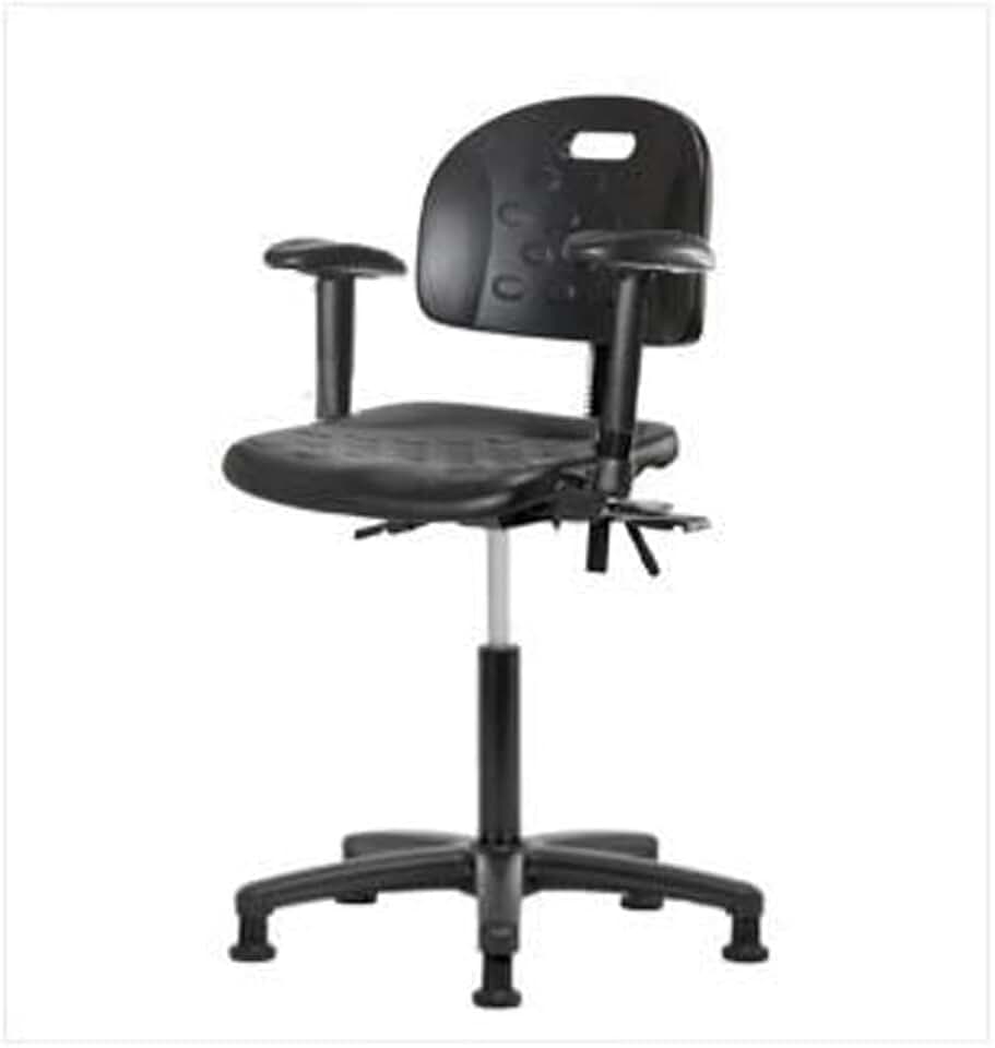 Thomas ECOM HPMBCH-RG-T0-A1-NF-RG Industrial Polyurethane Medium Bench Height Chair with Black Nylon Base Without Tilt, Adjustable Arms Without Foot Ring, Glides