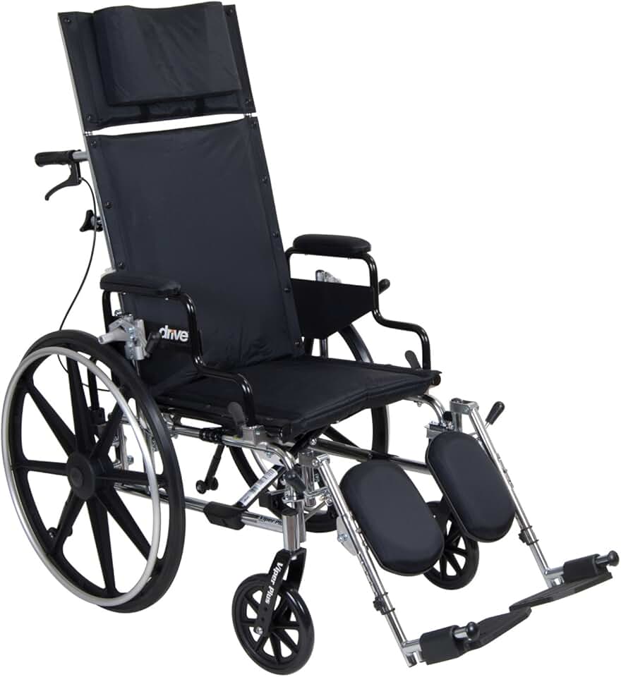 Drive Medical Viper Plus GT Full Reclining Wheelchair, Detachable Desk Arms, 18'' Seat Black