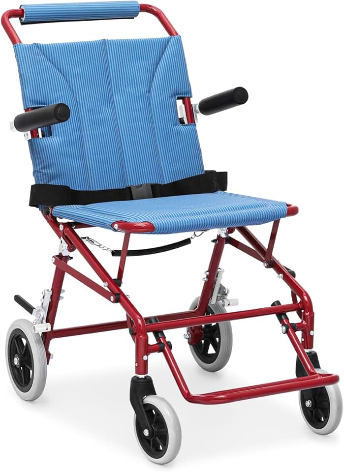 Lightweight Foldable Wheelchair Folding Transport Wheel Chair for Adults with Turnover Handrail and Foldable Pedal, 18-inch Seat, 250 lbs Weight Capacity, Red