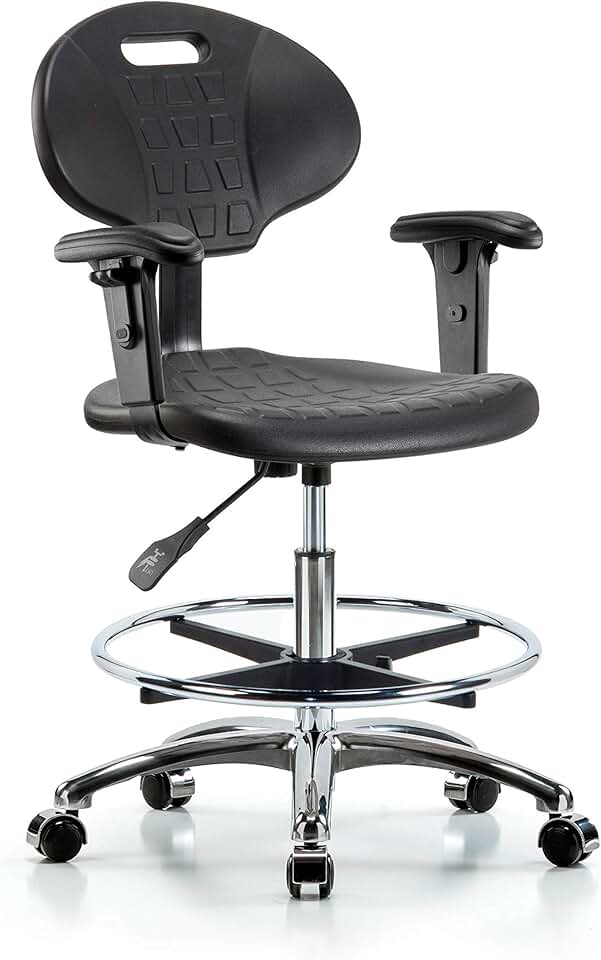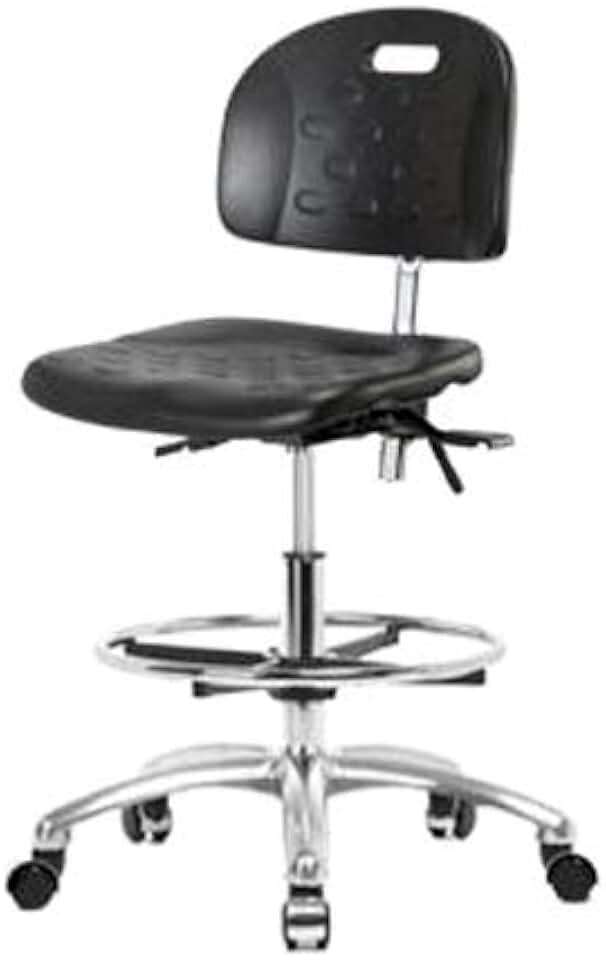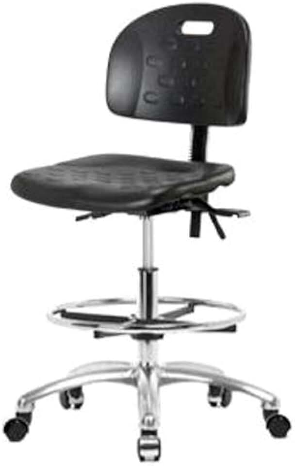 Thomas ECOM CLR-HPHBCH-CR-T0-A0-CF-RG Industrial Clean Room Polyurethane High Bench Height Chair with Chrome Base, Chrome Foot Ring, Glides, No Tilt and Arms