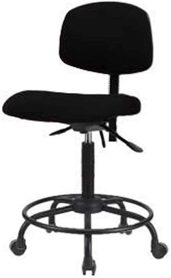Thomas ECOM FMBCH-RT-T0-A1-RG-F42 Fabric Medium Bench Height Chair with Round Tube Base Without Tilt, Adjustable Arms, Glides, Black