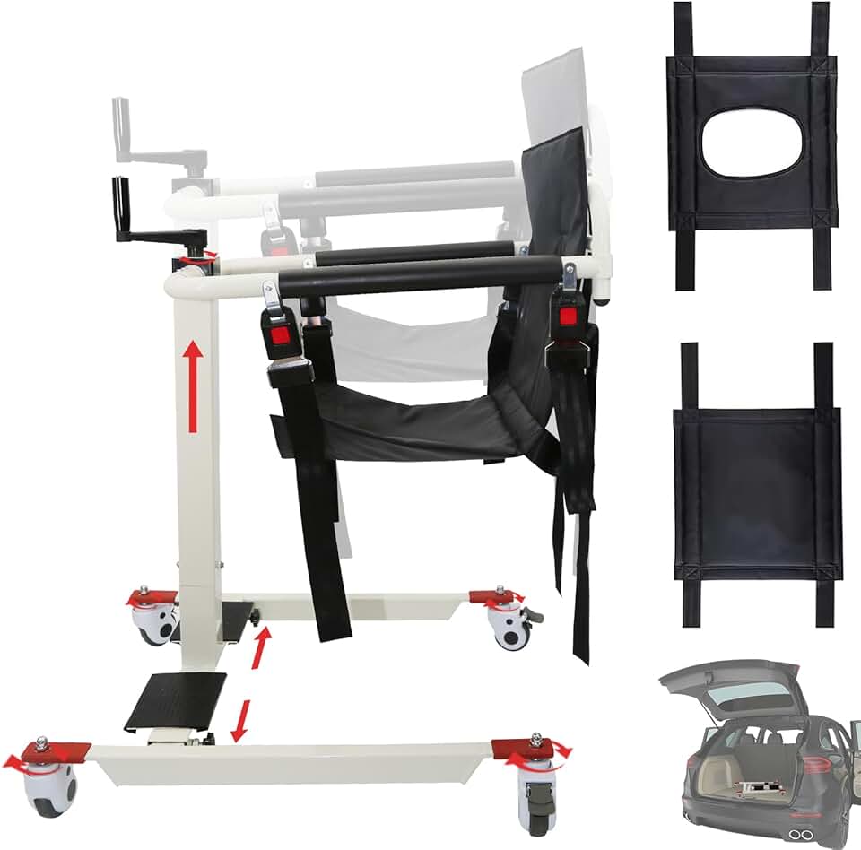 Patient Lift Transfer Chair, Lift Assist for Elderly Portable Car Lift Aid, with 4 Universal Wheels Height Adjustable 220 lbs