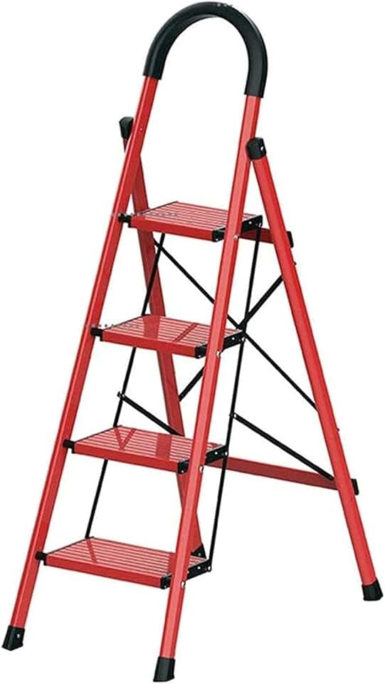 Family-Simple Furniture Safety Ladder 4 Steps Climbing Step Ladders/Wiping Glass/Triangle Mechanical Design Stable and Safe Folding Chairs (Red)