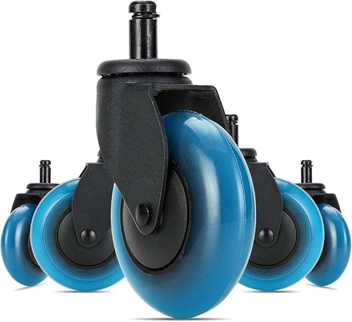 Office Chair Wheels Replacement Rubber Chair Casters Blue Polyurethane Soft Heavy Duty Swivel Furniture Wheels 5Pcs