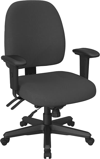 Office Star Ergonomic Mid Back Office Desk Chair with Adjustable Height, Tilt, and Padded Arm Rests, Icon Grey Fabric