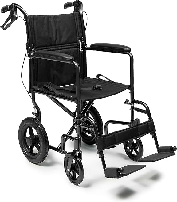 Graham-Field EJ870-1 Everest & Jennings Deluxe Transport Wheelchair, Steel Frame & Upgraded Wheels, Black, 19" Seat
