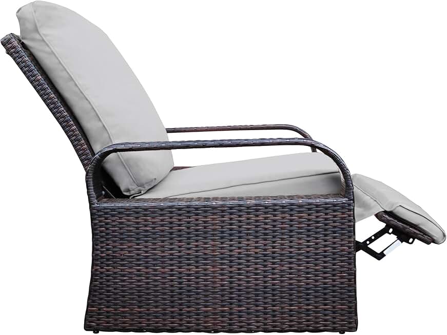 Outdoor Recliner, Automatic Adjustable Wicker Lounge Recliner Chair with Comfy Thicken Cushion, All Weather Aluminum Frame, Brown Wicker + Grey Cushion