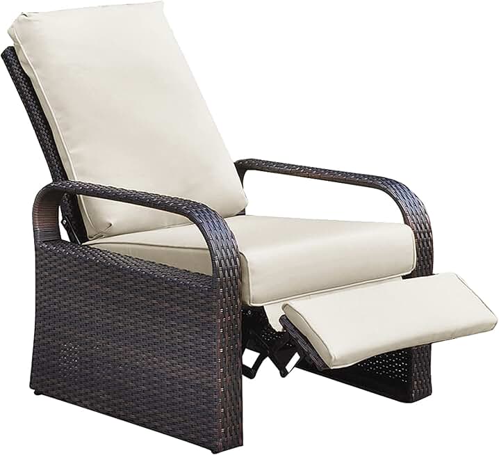Outdoor Recliner, Automatic Adjustable Wicker Lounge Recliner Chair with Comfy Thicken Cushion, All Weather Aluminum Frame, Brown Wicker + Beige Cushion