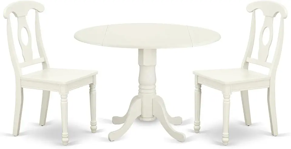East West Furniture Dublin 3 Piece Room Set Contains a Round Kitchen Table with Dropleaf and 2 Dining Chairs, 42x42 Inch, Linen White