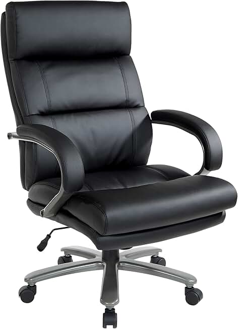 Office Star ECH Series Big and Tall Bonded Leather High Back Executive Chair with Lumbar Support, Padded Loop Arms and Titanium Base, Black