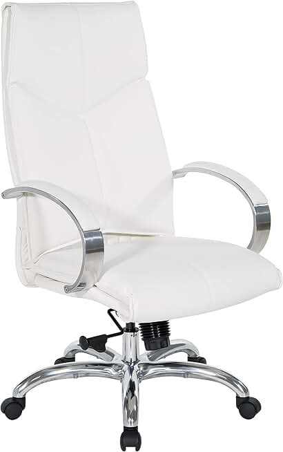 Office Star 7200 Series Deluxe Executive Faux Leather Office Desk Chair with Polished Aluminum Base and Padded Loop Arms, High-Back, Dillon Snow