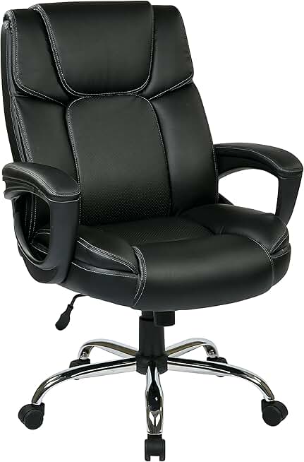 Office Star EC Series Executive Bonded Leather Big Man's Adjustable Office Chair for up to 350 lb. with Padded Loop Arms and Chrome Base, Black