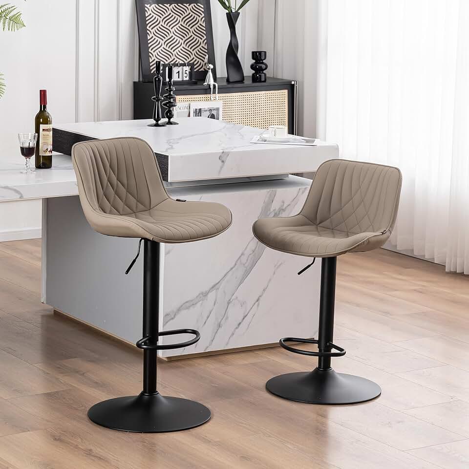 YOUTASTE Khaki Bar Stools Set of 2 Modern Faux Leather Upholstered Counter Height Bar Stool Adjustable Swivel Barstools with Back Tall Stool Chairs for Kitchen Island Bistro