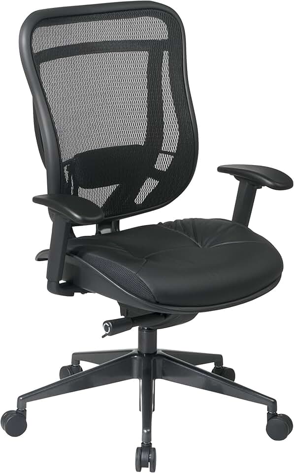 SPACE Seating Breathable Mesh High Back and Padded Black Leather Seat, Ultra 2-to-1 Synchro Tilt Control, Seat Slider and Gunmetal Finish Executive Chair