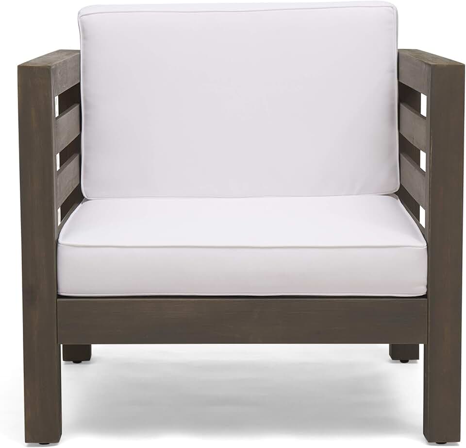 GDFStudio Outdoor Acacia Wood Club Chair with Cushion, Gray Finish and White