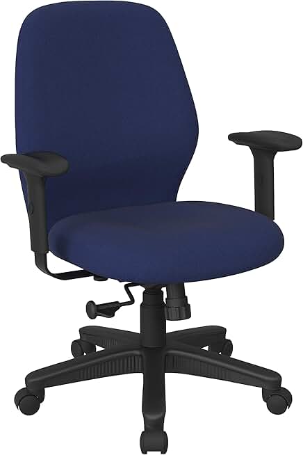 Office Star Ergonomic Mid Back Adjustable Office Desk Chair with Thick Padded Seat and Built-in Lumbar Support, Icon Navy Blue Fabric
