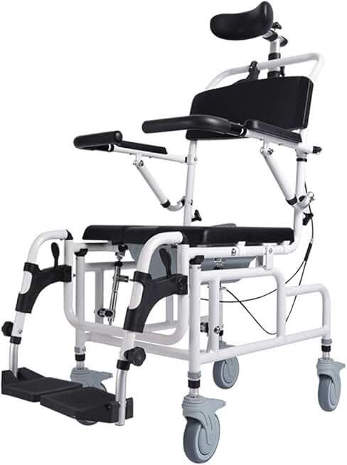 Tilt Shower Commode Chair Personal Mobility Assist Toilet Commode Wheelchair Transport Rolling Chair Waterproof with Padded Flip-up Arm and Foot Rests Adjustable Headrest (with Headrest)