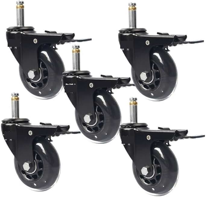 5Pcs 3 Inch M10/M11 Circlip Pu Transparent Wheel with Brake Office Chair Polyurethane Universal Caster Silent(M10(10mm)), Black