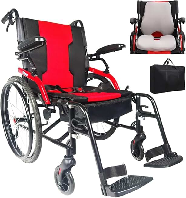 14lb 3D Cushion Flip Back Arms Magnesium Lightweight Wheelchair Foldable,Portable Transport Chair with Travel Bag,Travel Wheelchairs for Adults(Black)