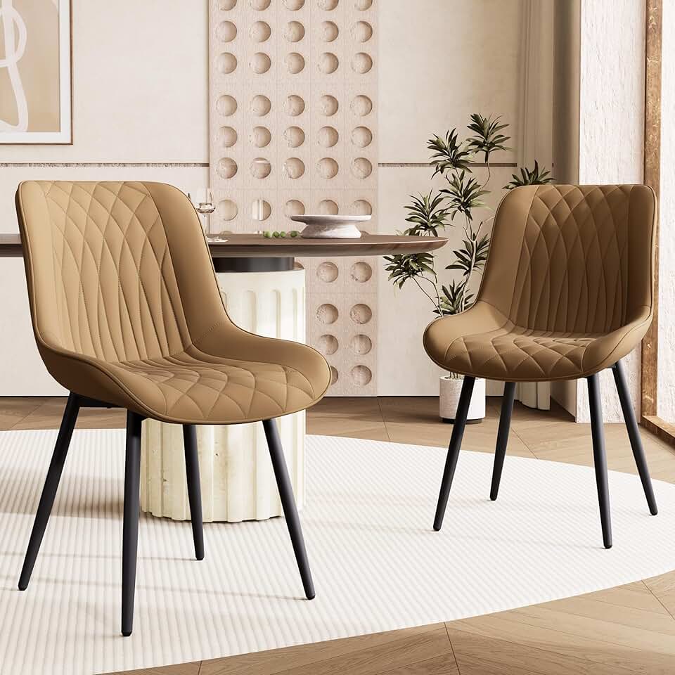 YOUNIKE Tan Dining Chairs Set of 2 with High Backs Mid Century Modern Kitchen & Dining Room Chairs PU Faux Leather Upholstered sillas de comedor Comfortable Large Padded Accent Chairs with Metal Legs