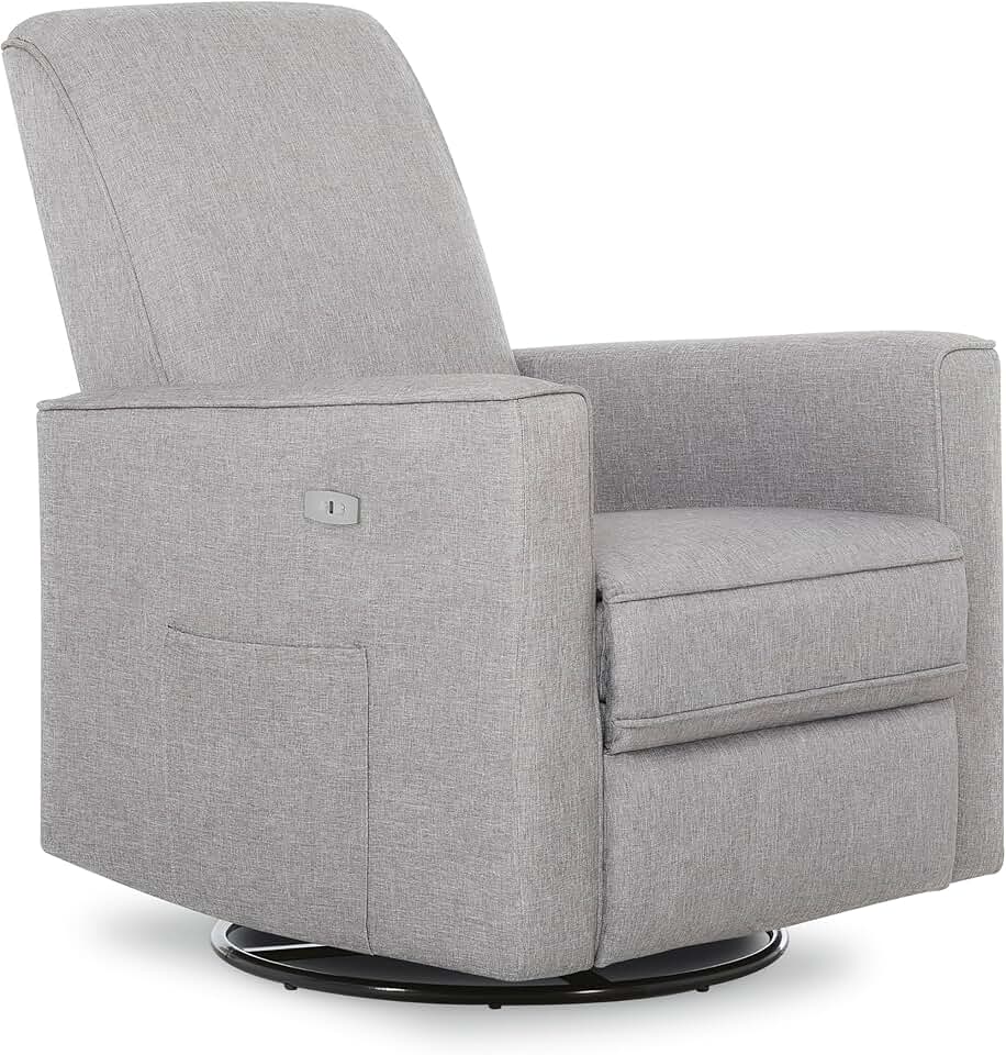 Evolur Harlow Deluxe Upholstered Plush Seating Glider Swivel, Power Recliner with USB Port, Greenguard Gold Certified, Glider Chair for Nursery in Light Grey, Modern Nursery Recliner