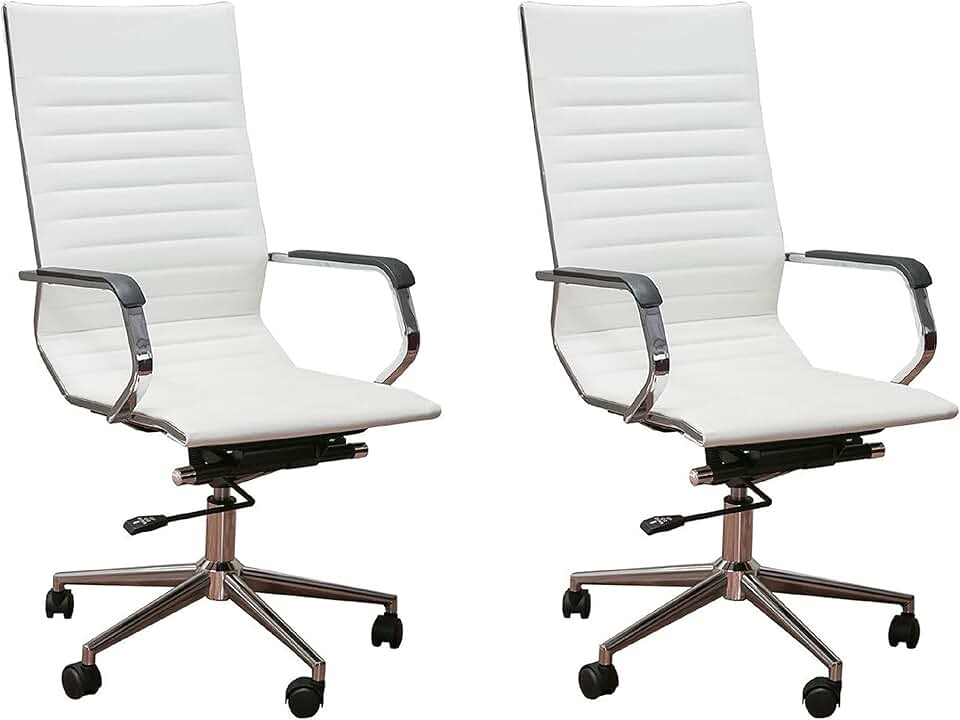 ErgoMax 2-Set Ergonomic Leather Adjustable-Home-Desk-Chairs, 46 Inch, White